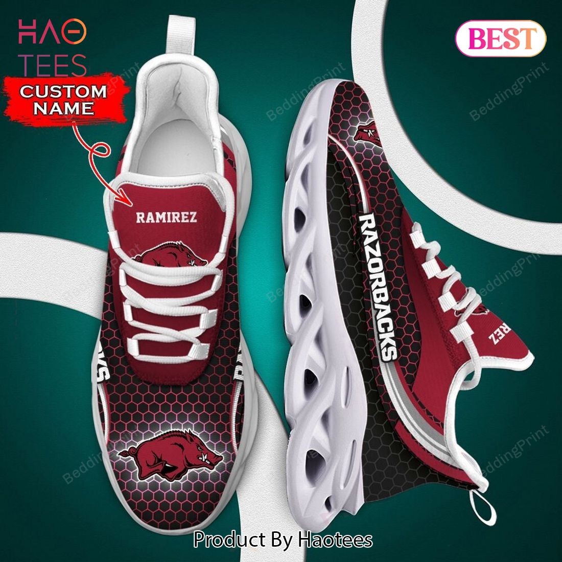 Arkansas Razorbacks NCAA Custom Name Red Color Max Soul Shoes