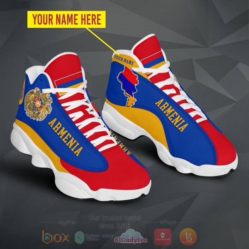 Armenia Personalized Yellow Blue Air Jordan 13 Shoes