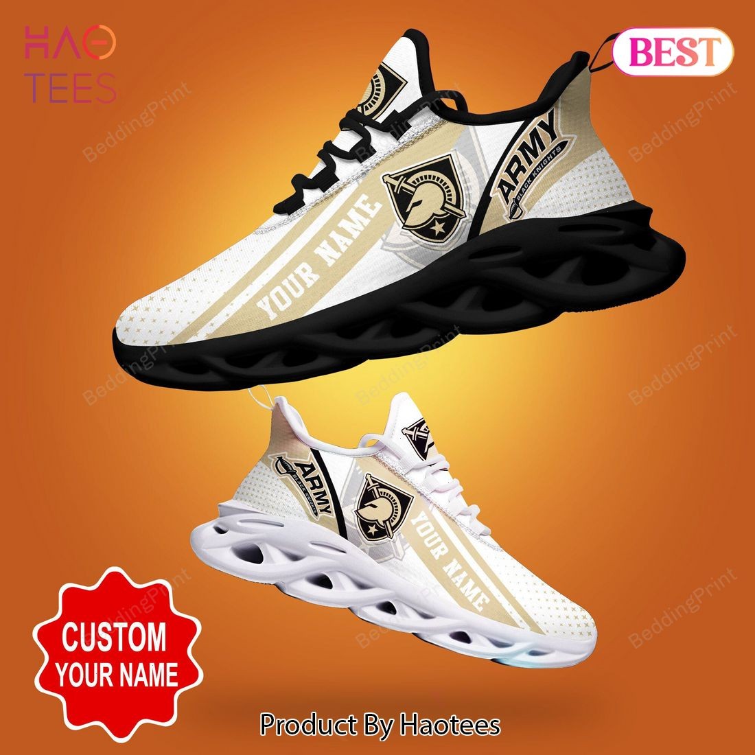Army Black Knights NCAA Personalized White Mix Gold Max Soul Shoes