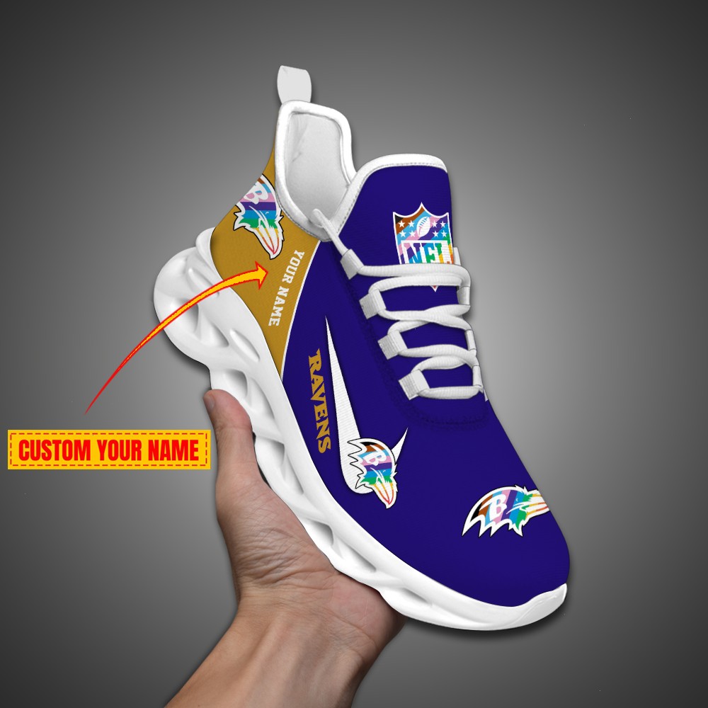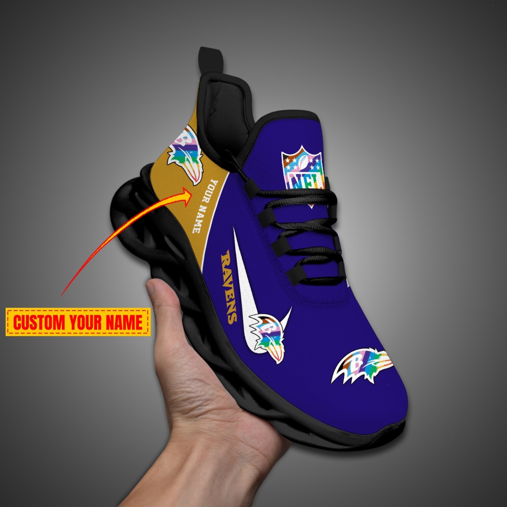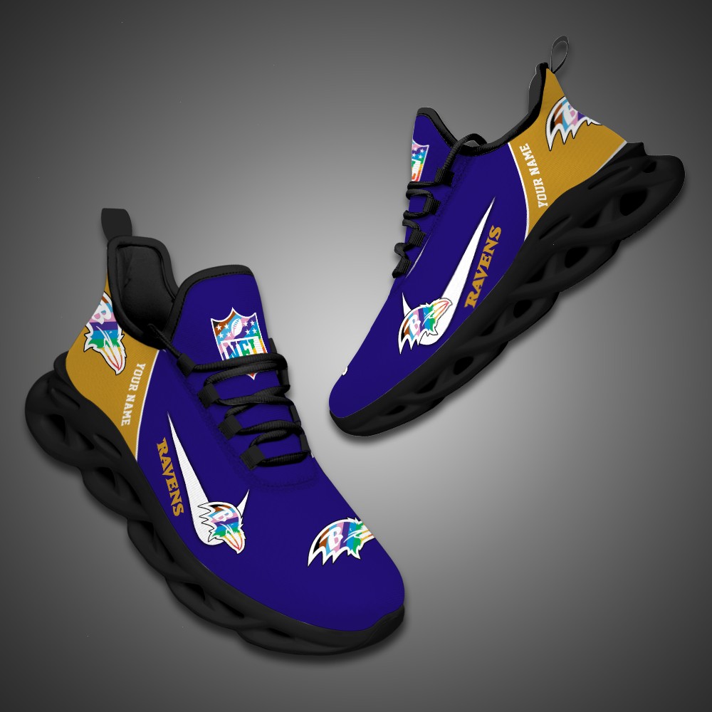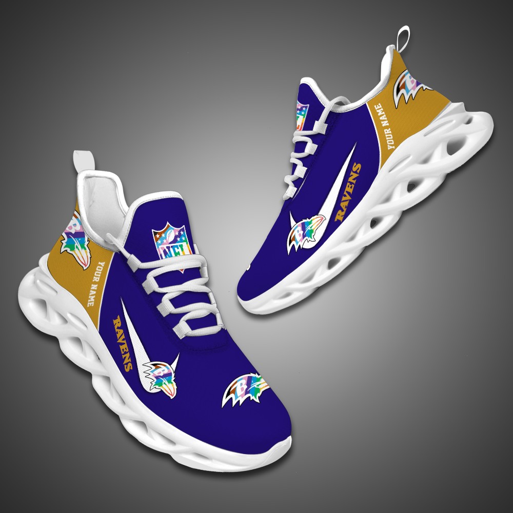 Baltimore Ravens Personalized Pride Month Luxury NFL Max Soul Shoes Ver 2