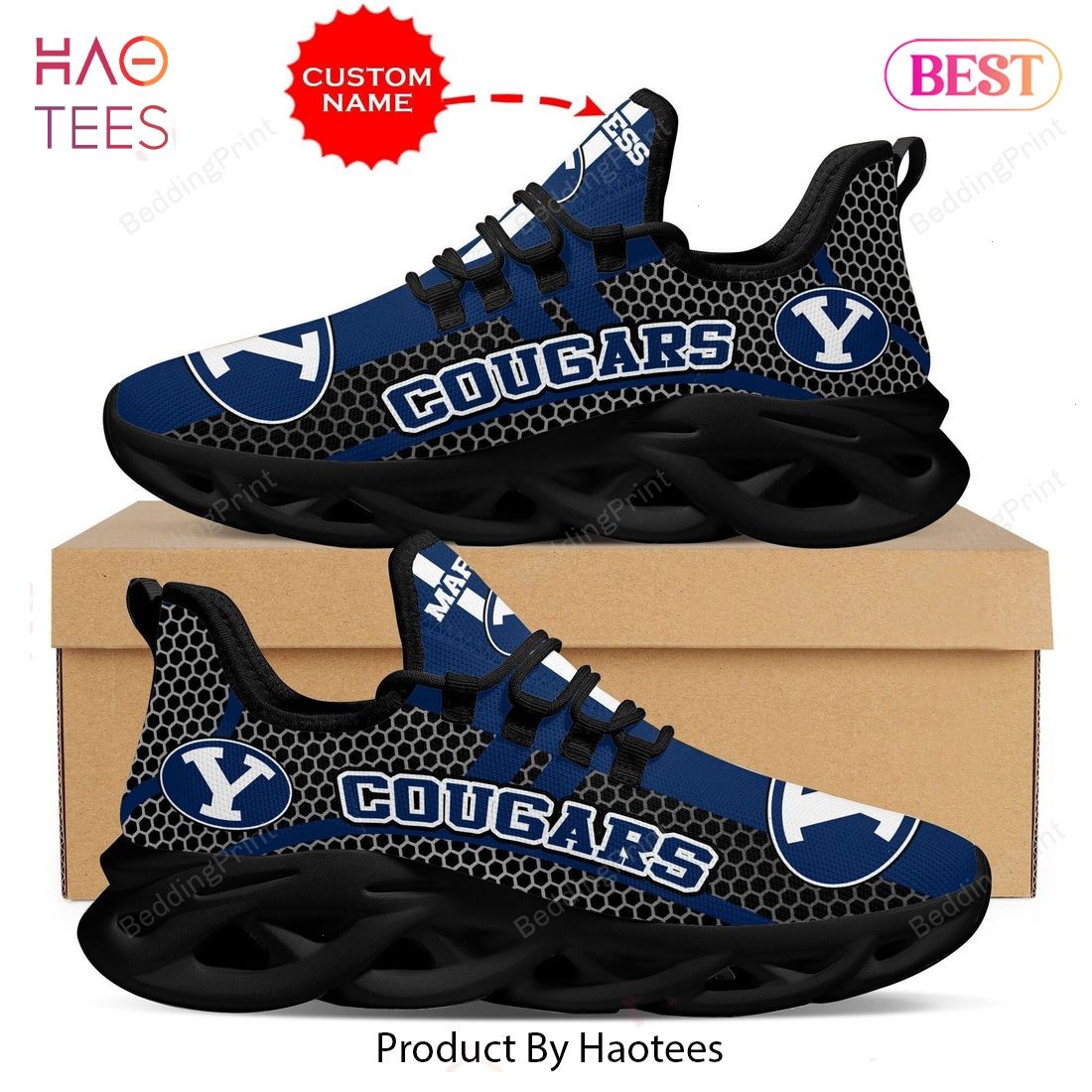 BYU Cougars NCAA Black Mix Blue Custom Name Max Soul Shoes