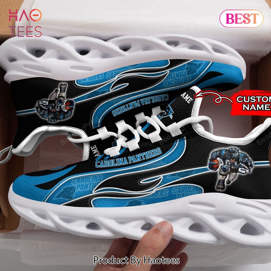 Carolina Panthers NFL Personalized Black Mix Blue Max Soul Shoes