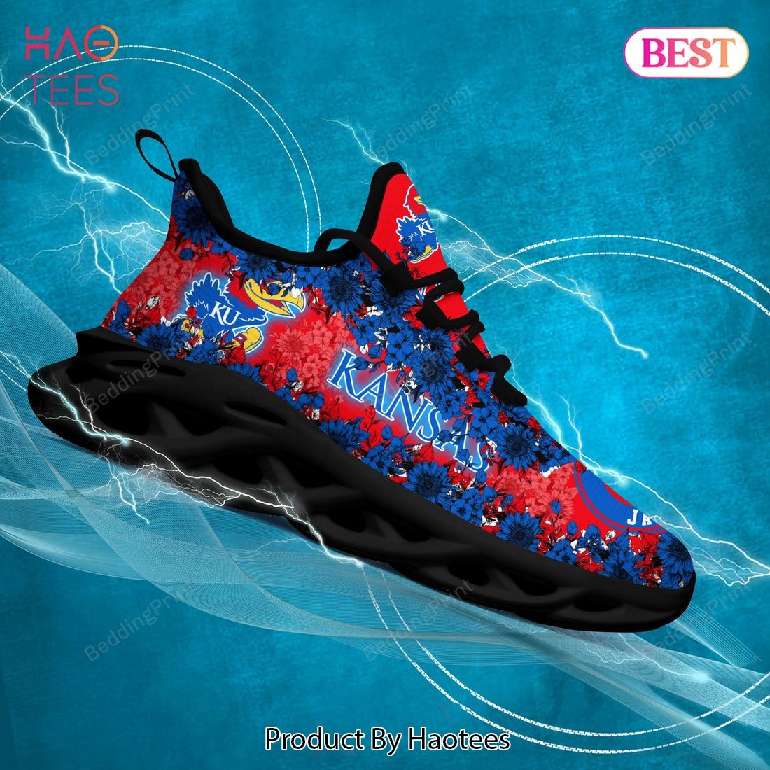 Kansas Jayhawks NCAA Red Blue Flower Max Soul Shoes