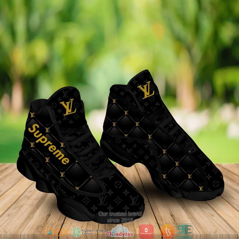 Louis Vuitton Supreme Black Gold Pattern Air Jordan 13 Sneaker Shoes