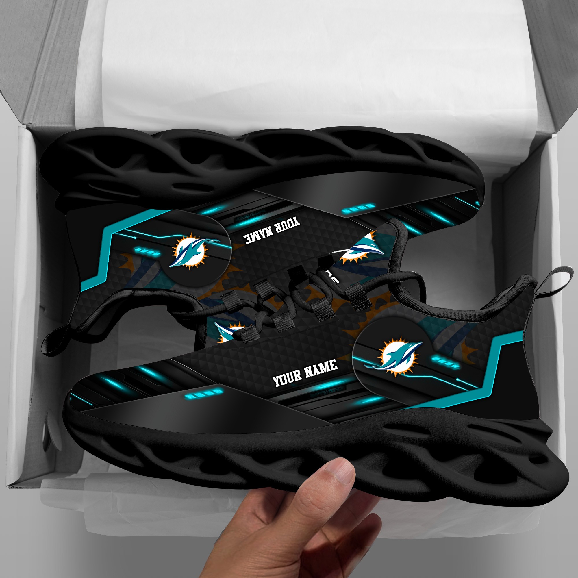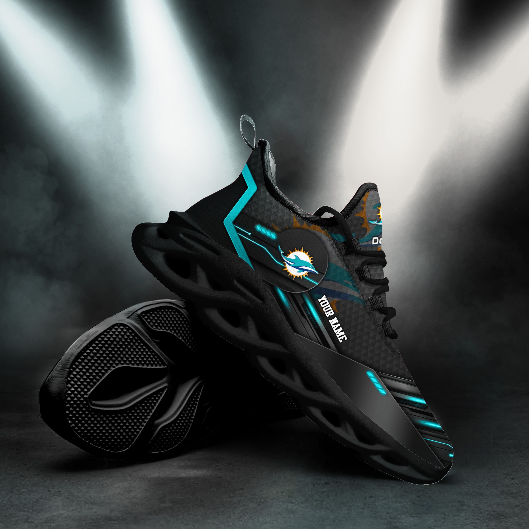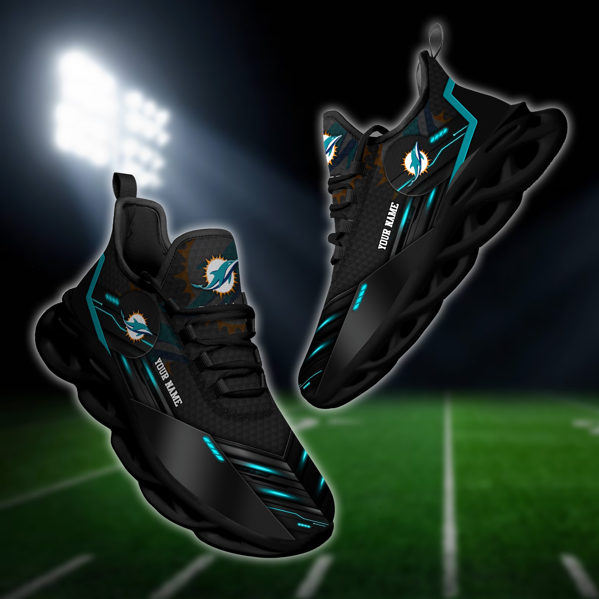 Miami Dolphins Personalized NFL Sport Black Max Soul Shoes