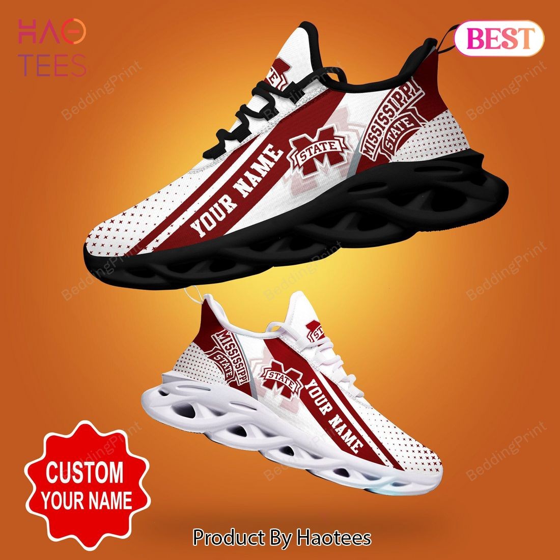 Mississippi State Bulldogs NCAA Personalized Red White Max Soul Shoes