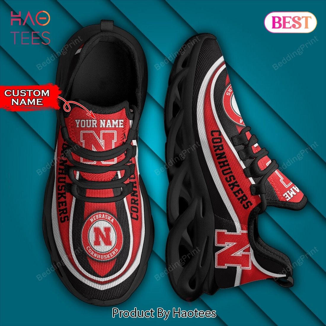 NCAA Nebraska Cornhuskers Personalized Red Mix Black Max Soul Shoes