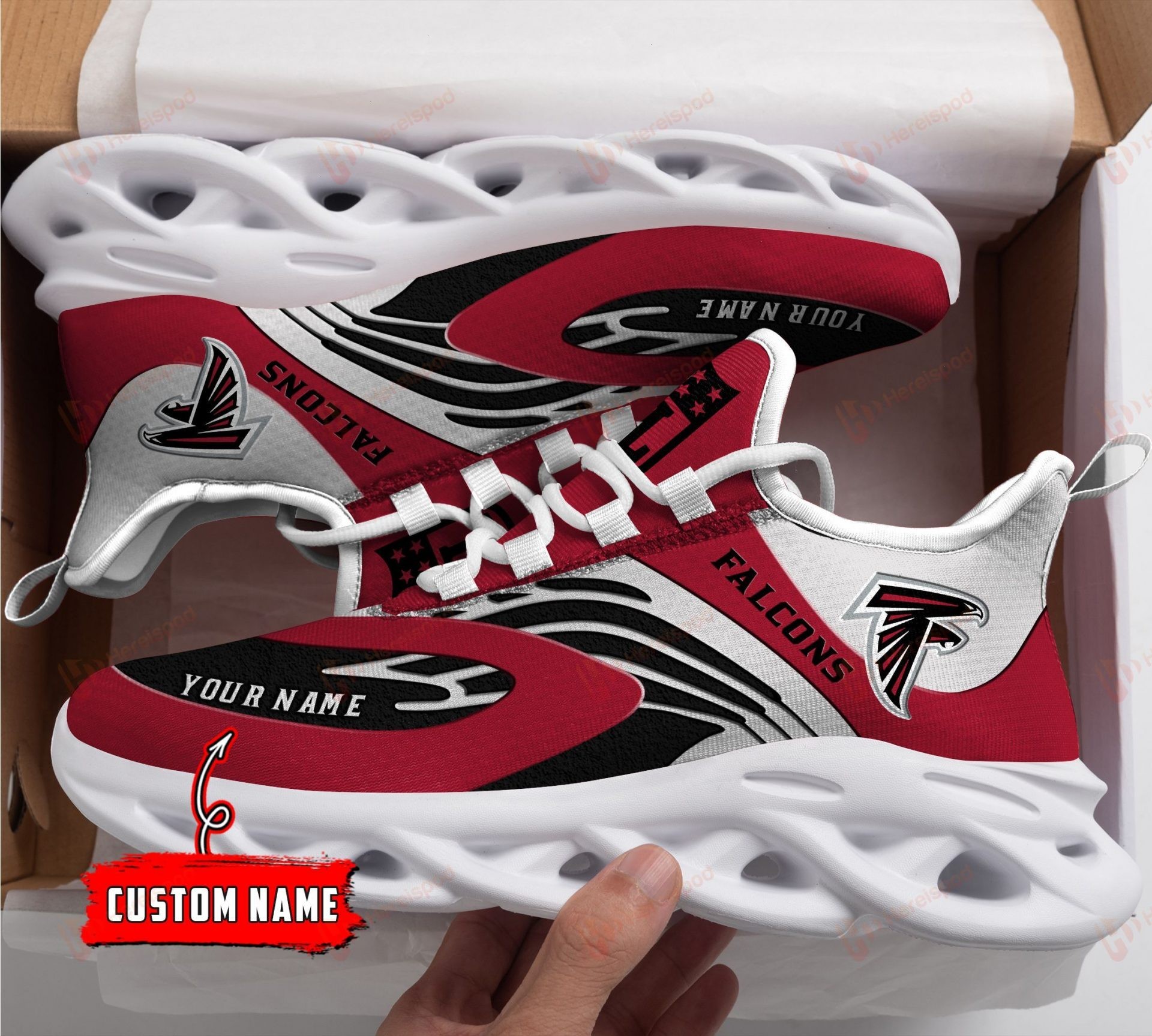 NFL Atlanta Falcons Custom Name Red White Max Soul Shoes