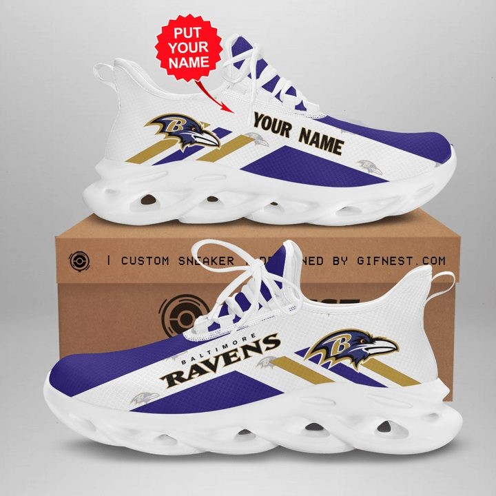 NFL Baltimore Ravens Custom Name White Purple Max Soul Shoes