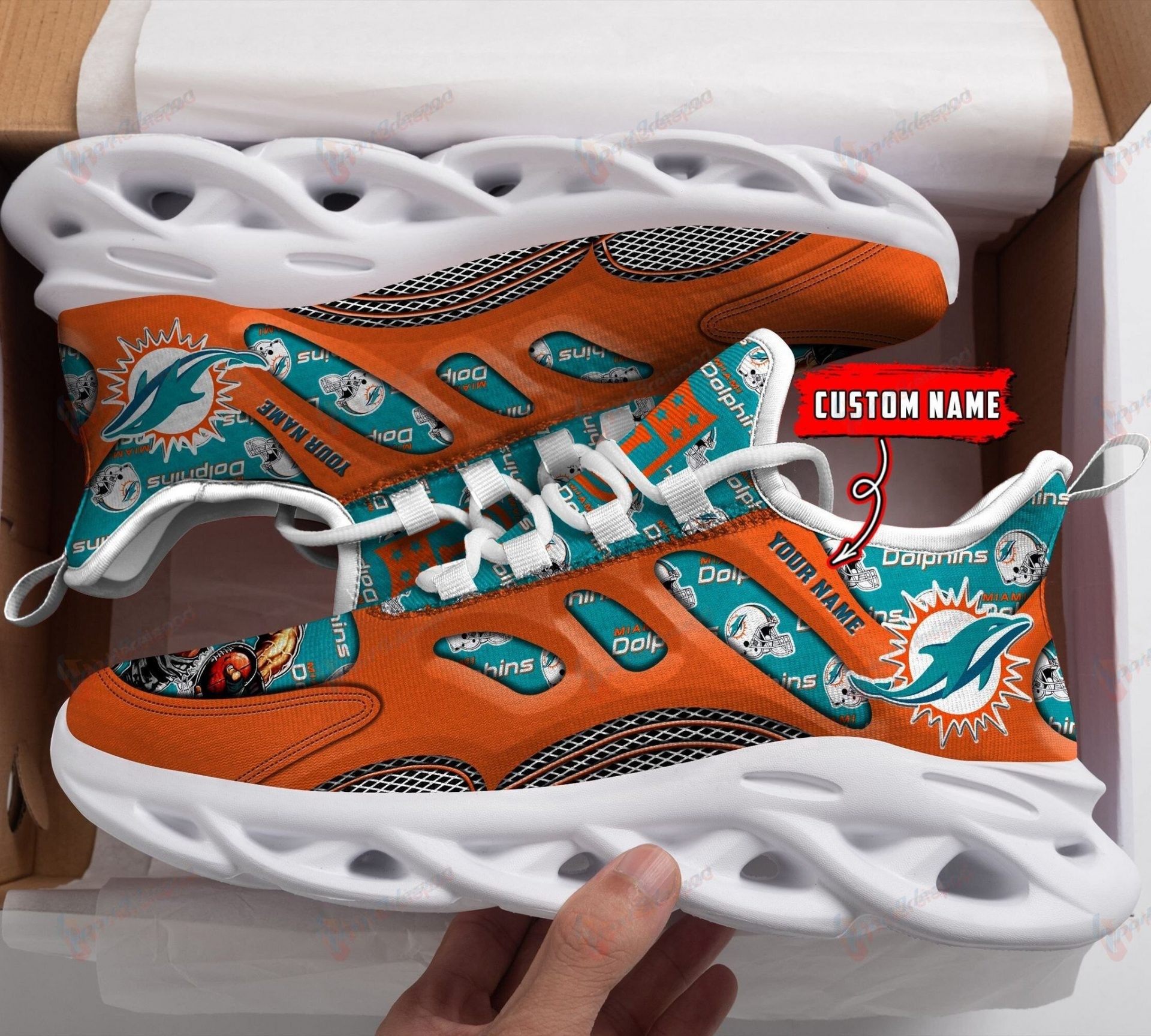 NFL Miami Dolphins Custom Name Aqua Orange Max Soul Shoes