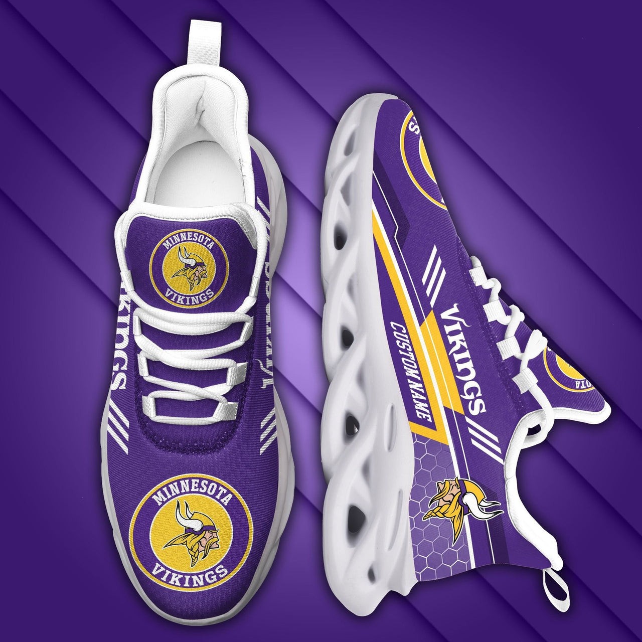 NFL Minnesota Vikings Custom Name Purple Yellow White Stripes Max Soul Shoes