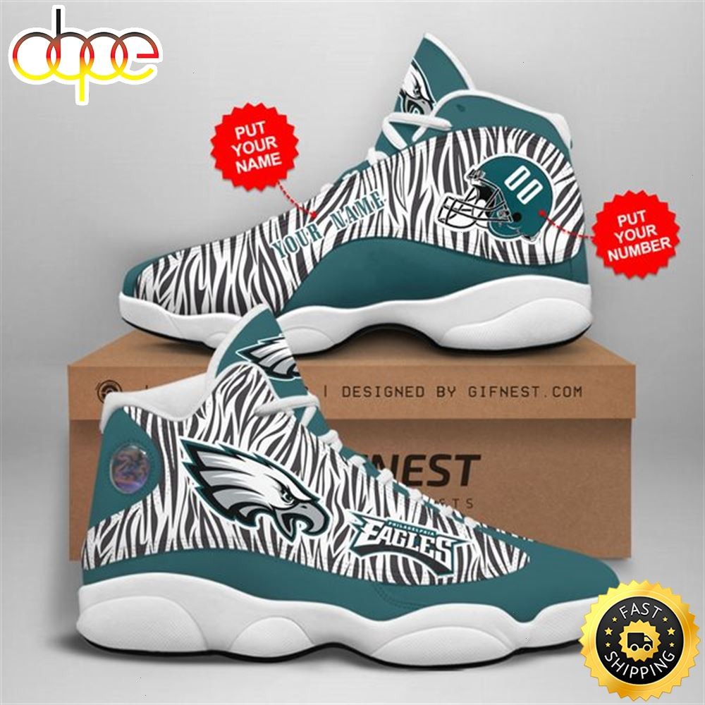 NFL Philadelphia Eagles Custom Name Number Air Jordan 13 Shoes V2