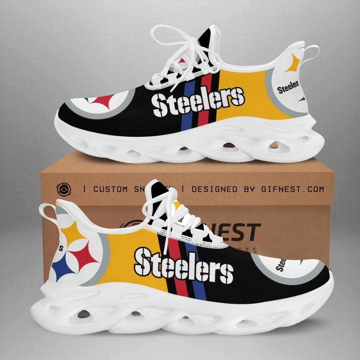 NFL Pittsburgh Steelers Black Golden Red Blue Stripes Max Soul Shoes