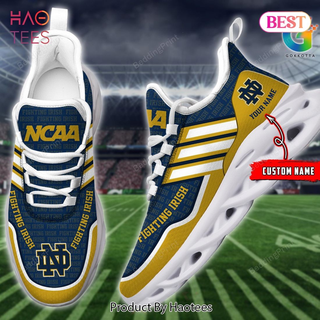 Notre Dame Fighting Irish Personalized Blue Gold Max Soul Shoes