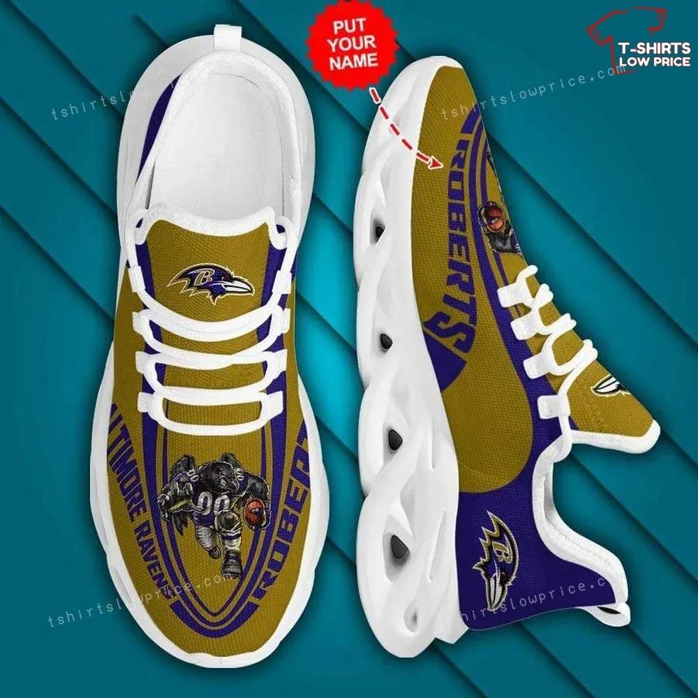 Personalize NFL Baltimore Ravens Gold Purple Max Soul Sneakers Running Shoes