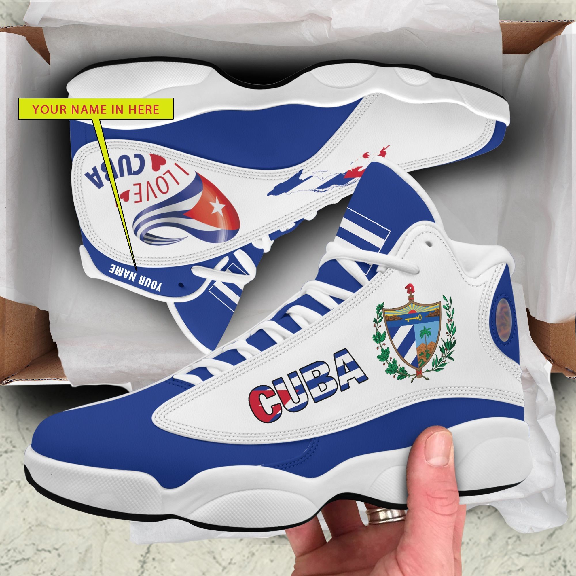 Personalized I Love Cuba Blue White Custom Air Jordan 13 Shoes