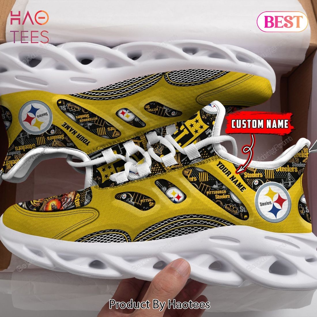 Pittsburgh Steelers Personalized Gold Color Max Soul Shoes for Fan