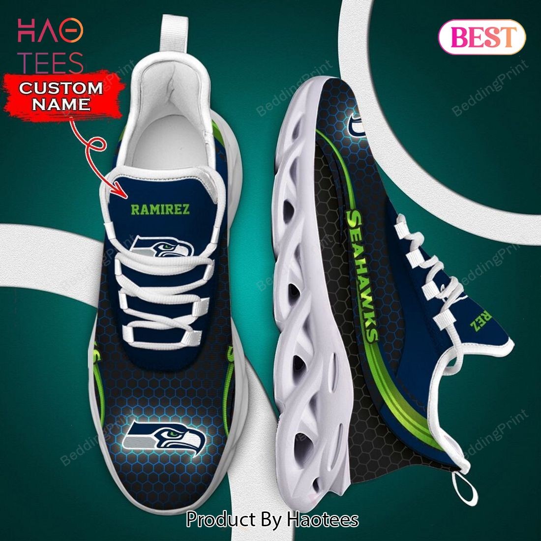 Seattle Seahawks NFL Custom Name Blue Green Max Soul Shoes