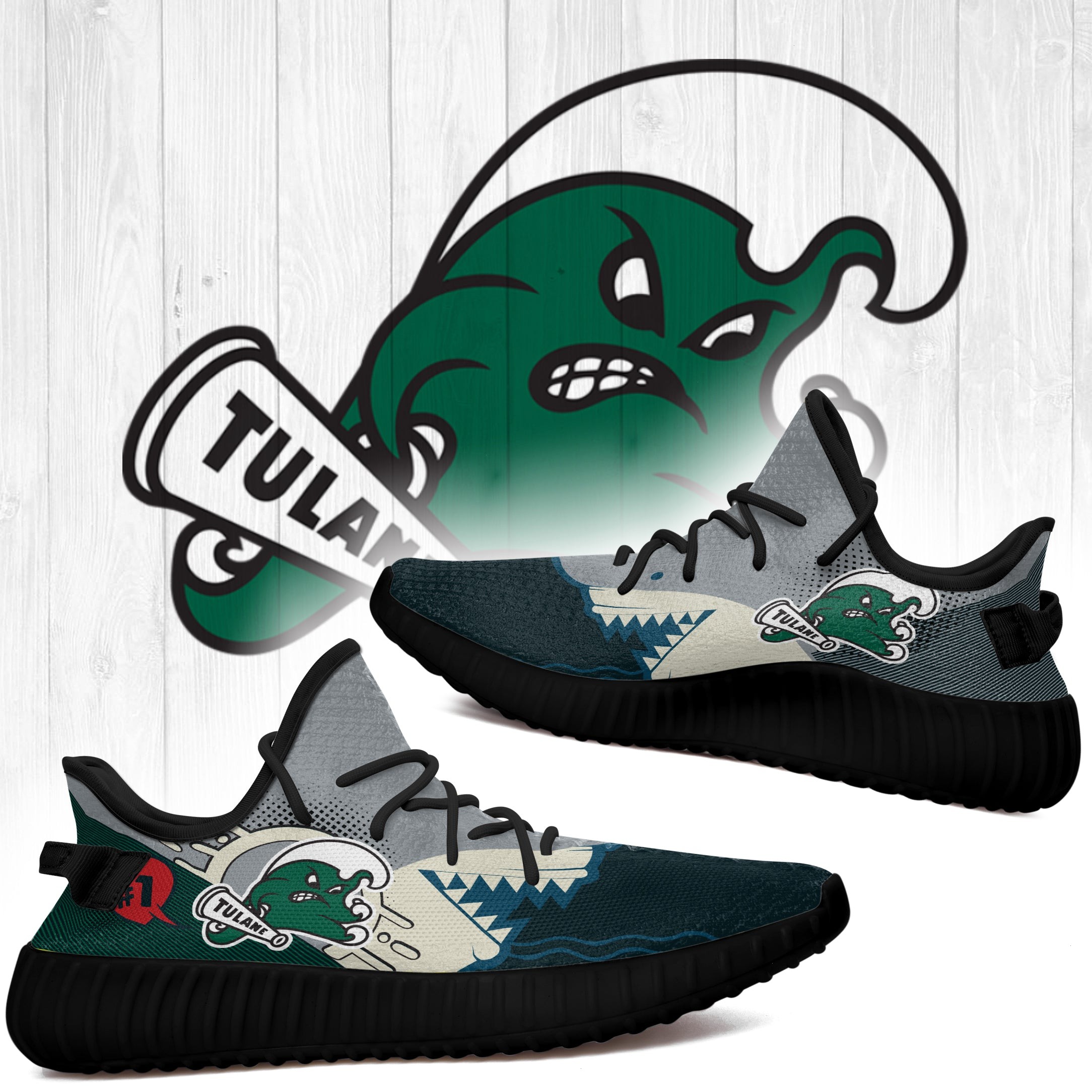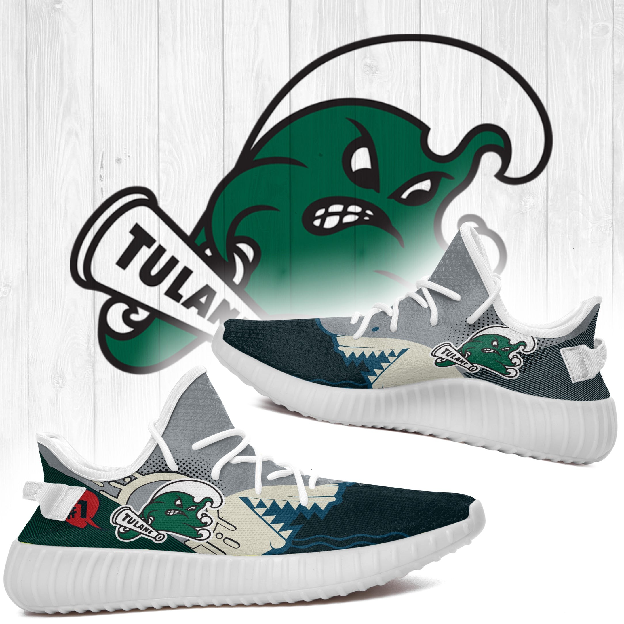 Shark Tulane Green Wave Ncaa Yeezy Shoes A35