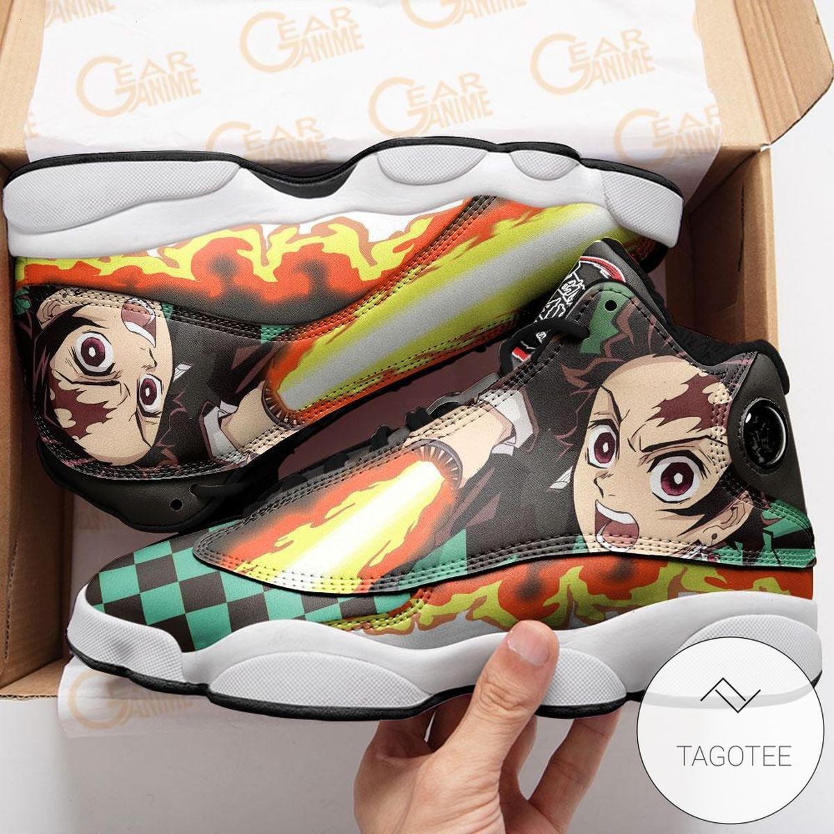 Tanjiro Sneakers Sun Breathing Custom Anime Demon Slayer Air Jordan 13 Shoes