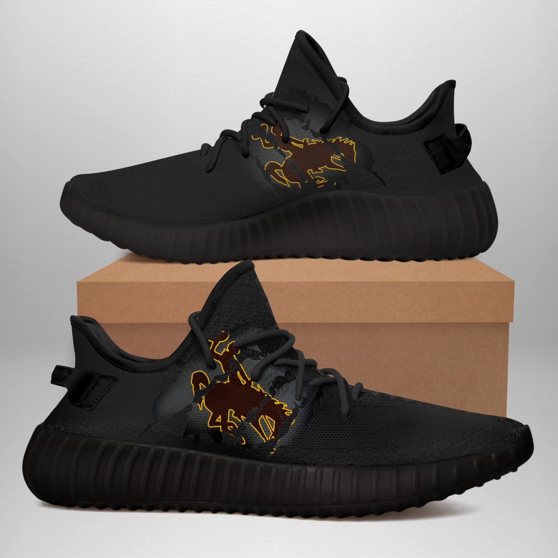 Yeezy Shoes Ncaa Wyoming Cowboys Black Yeezy Boost Sneakers V1